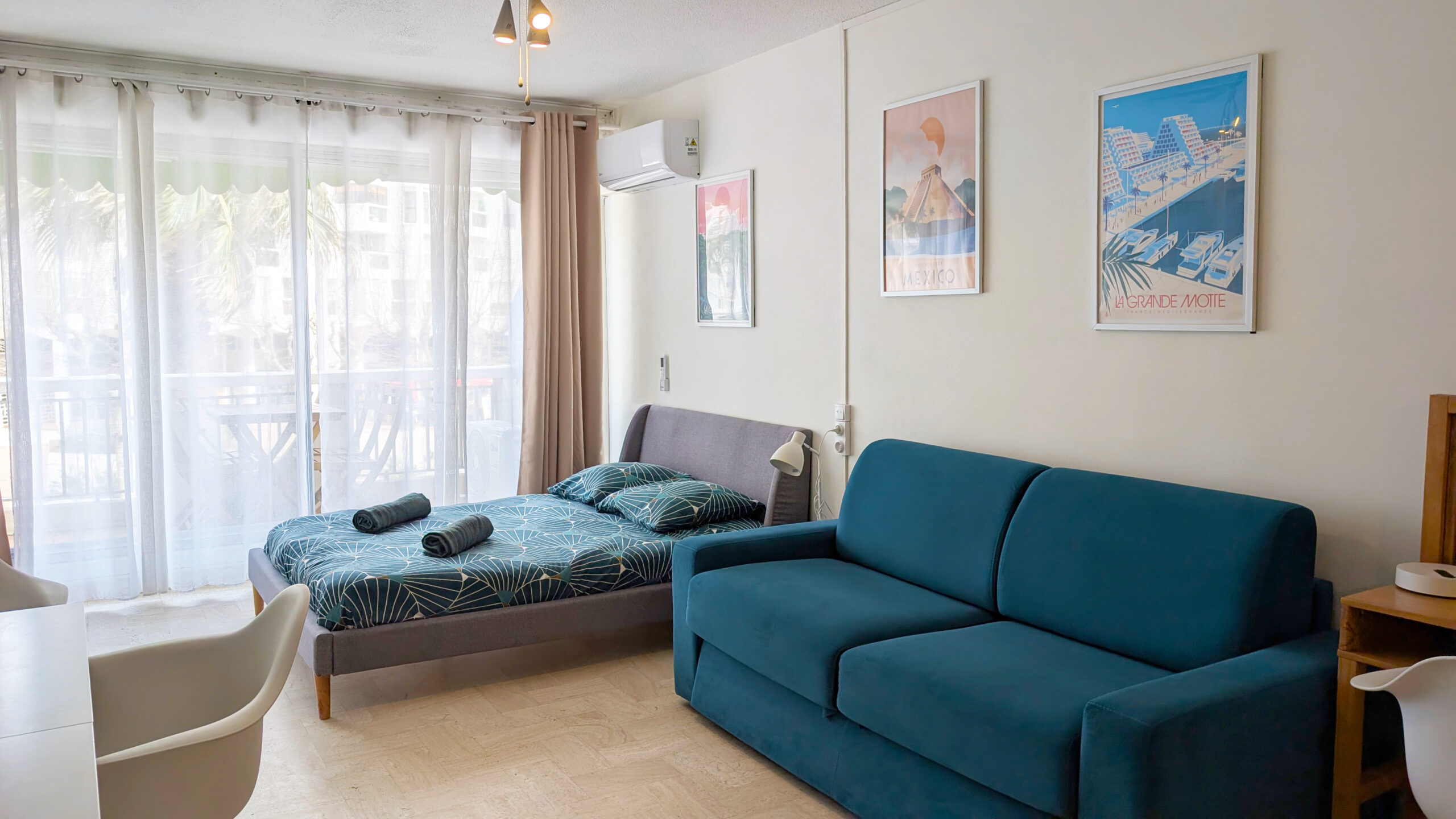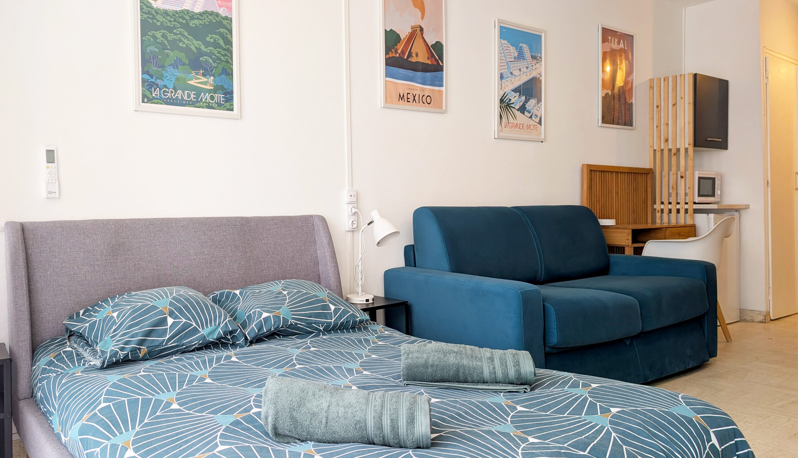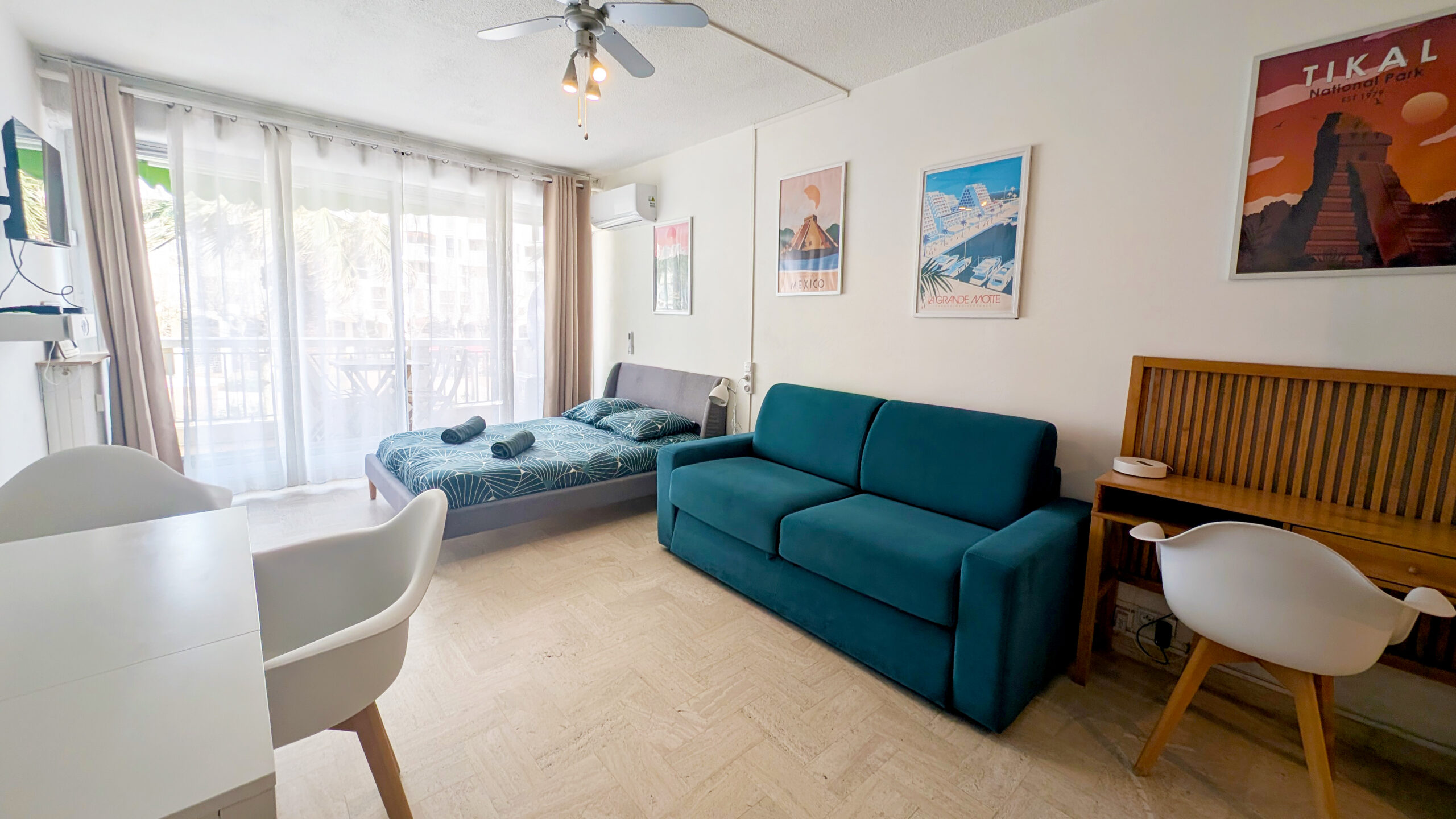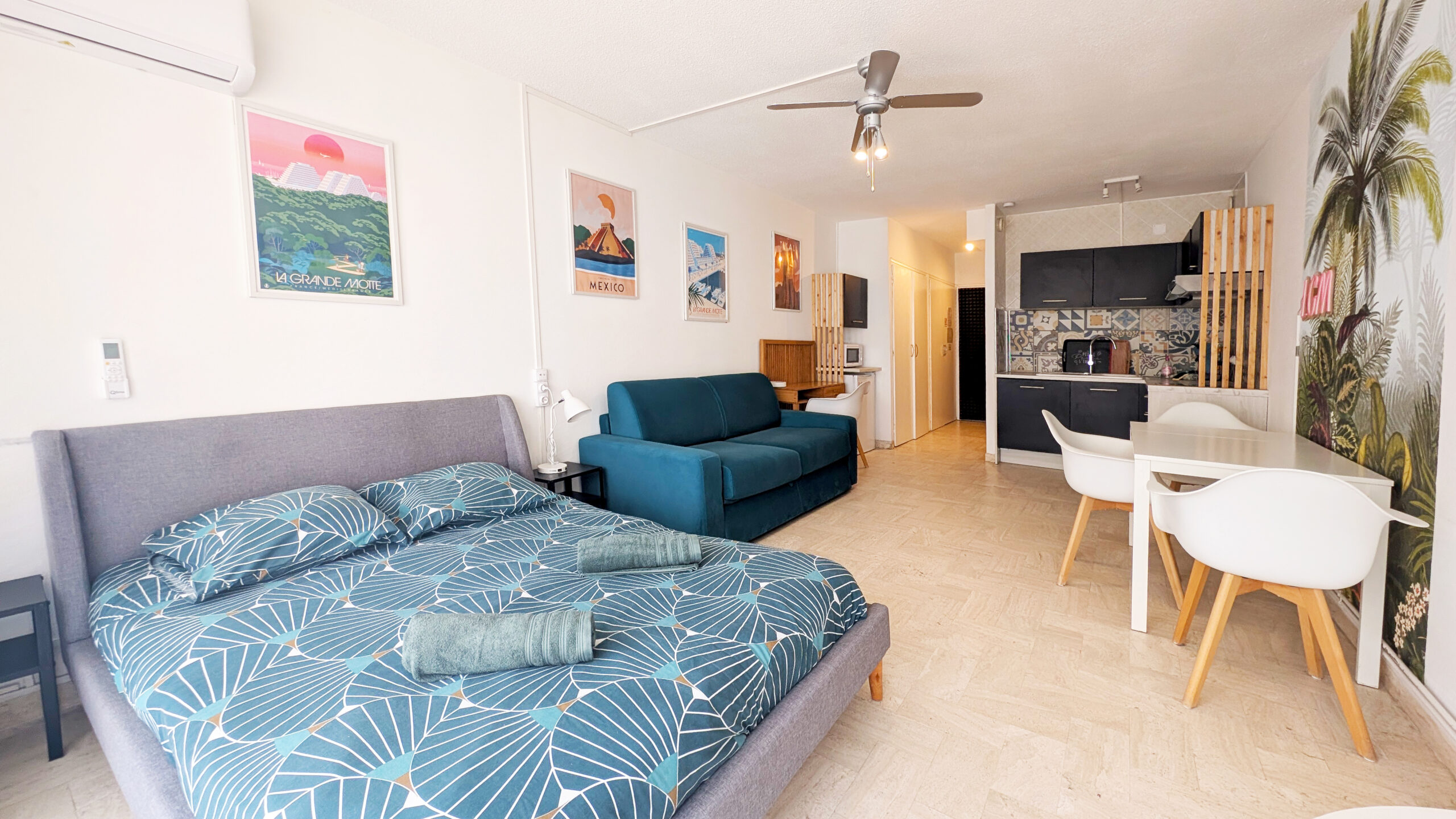☀️ Le studio est climatisé et bénéficie d’une terrasse de 6 m² avec petite vue mer. Vous pourrez rejoindre les quais et le bord de mer immédiatement. Wifi inclus.